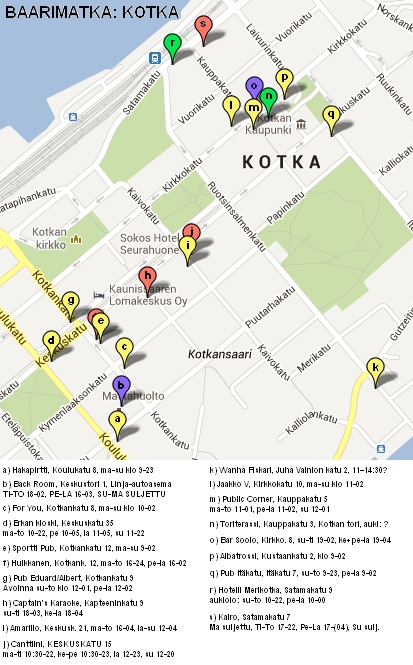 -Yhden extrapisteen saa myös, mikäli saa selville ja merkkaa karttaa missä kaikissa baareissa on karaoke-mahdollisuus ja mihin aikaan.