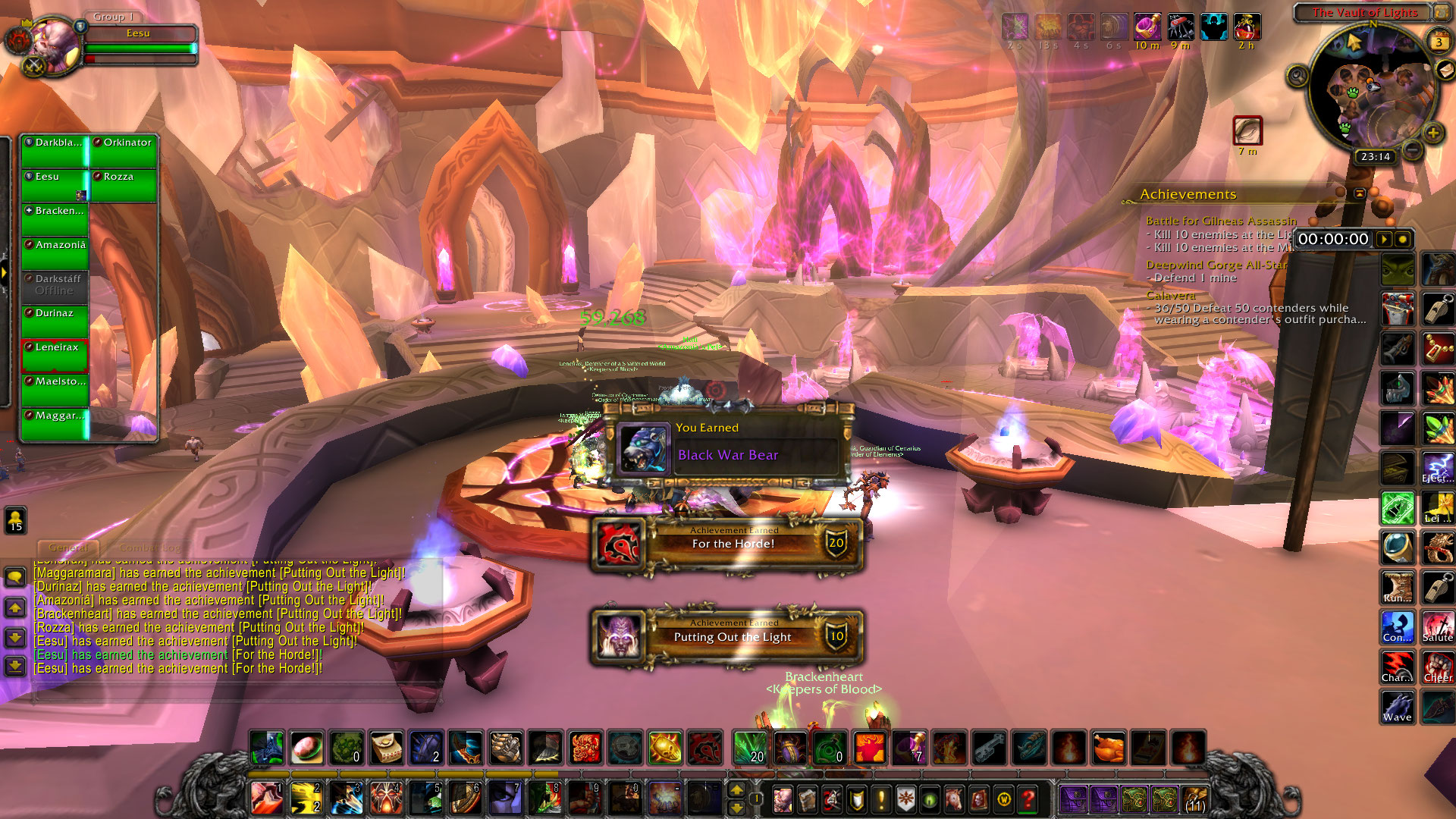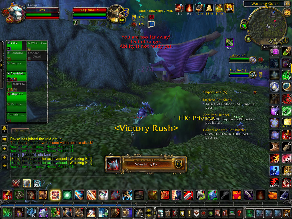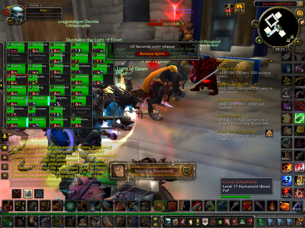 PvPImmortal No More (19th Jul 2010) Master of WSG (25th Apr 2011) Overthrow the Council (8th Feb 2012) Wrecking Ball (22nd Jan 2013) Storming Stormwind (25th Jun 2013)