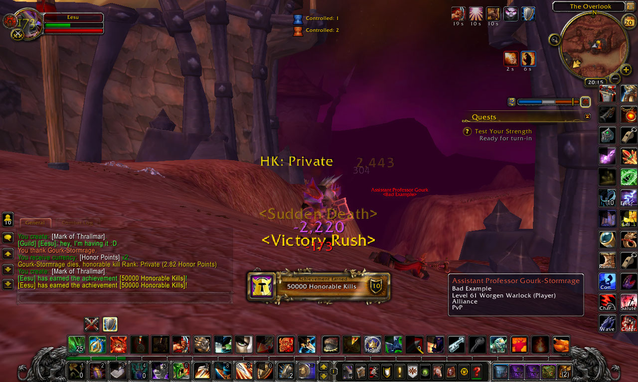 my biggest bg damage (5th Feb 2015) 50.000 honorable kills (20th Oct 2015) For the Horde (4th Nov 2017)